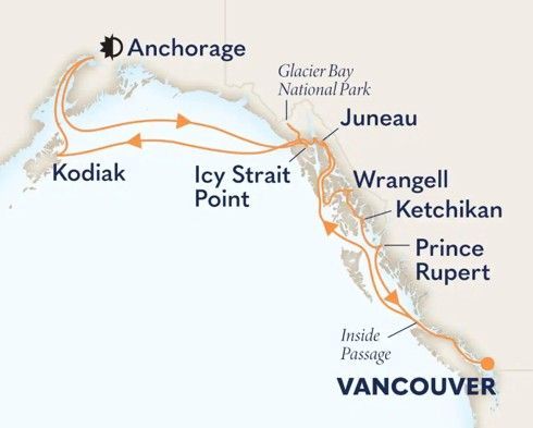 Vancouver – Juneau – Kodiak – Anchorage (2 Days Overnight Onboard) –