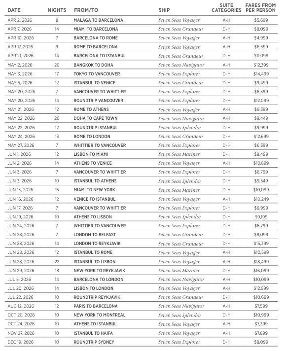 Unlimited shore excursions, exquisite dining including specialty restaurants, unlimited beverages including fine wines and craft cocktails, in-suite dining, pre-paid gratuities, unlimited wi-fi, valet laundry, access to the spa, and even a pre-night hotel for concierge and higher! This is the perfect opportunity for you to try an unrivaled all-inclusive experience at sea, on a small and intimate ship! Time to spoil yourself!”